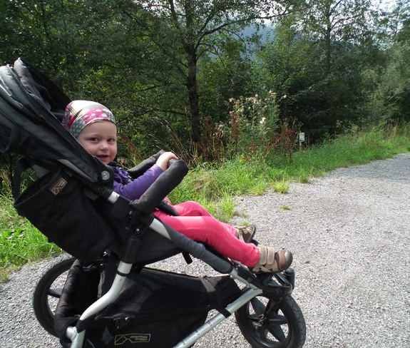 Von Latschau entlang der Rodelbahn in Richtung Vandans. Breite Forst-Schotterstraße - geeignet für Kinderwagen.