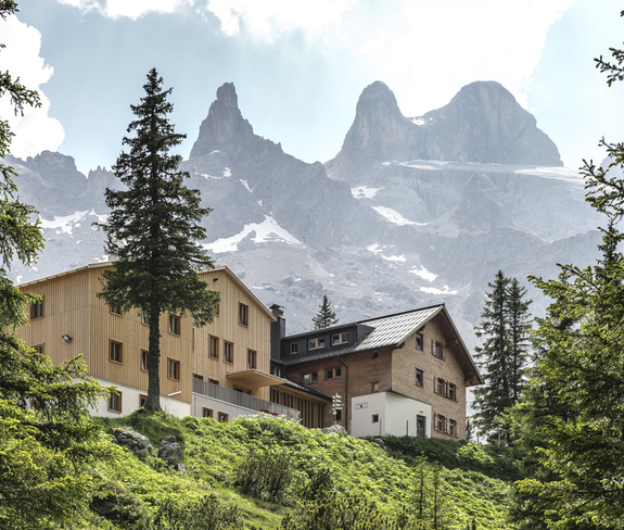 Auf dem Weg zur Lindauer Hütte (1.744 m) richtet sich der Blick immer wieder hinauf zu den imposanten Kalkspitzen von Drusenfluh, Drei Türmen und Sulzfluh, die den Horizont am Ende des Gauertals wie Haifischflossen aussehen lassen. In zwei bis zweieinhalb Stunden erreichst Du die im Jahr 2017 neu gestaltete Schutzhütte bequem zu Fuß durch das Gauertal oder im Sommer auch über den Themenweg Gauertaler AlpkulTour von der Bergstation der Golmerbahn.