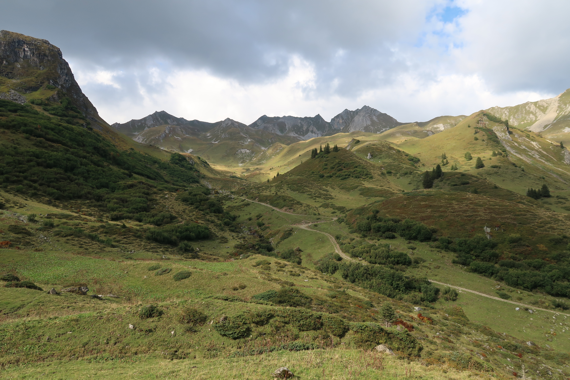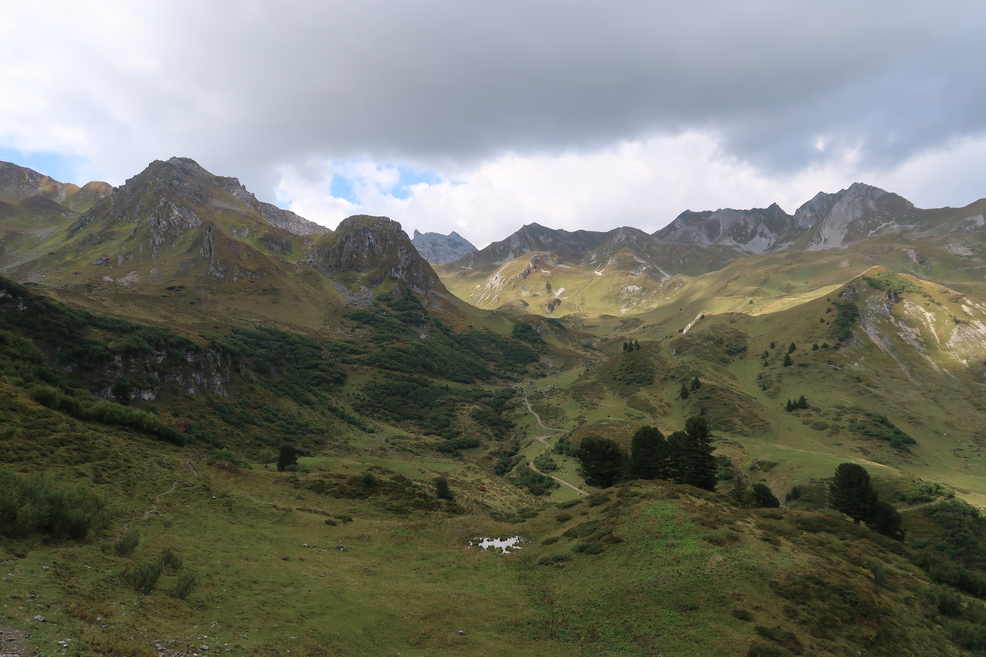 Nach der Auffahrt mit der Golmerbahn startet die Rätikonrunde bei dem Ausgang der Bahn und führt dich Richtung Golmer Kreuzjoch (2.261 m) über das Golmer Joch (2.124 m) und den Latschätzkopf (2.219 m). Vom Kreuzjoch gehst Du nach unten zum Hätaberger Joch (2.154 m) und von dort folgt ein Abstieg bis oberhalb der oberen Zaluandaalpe.